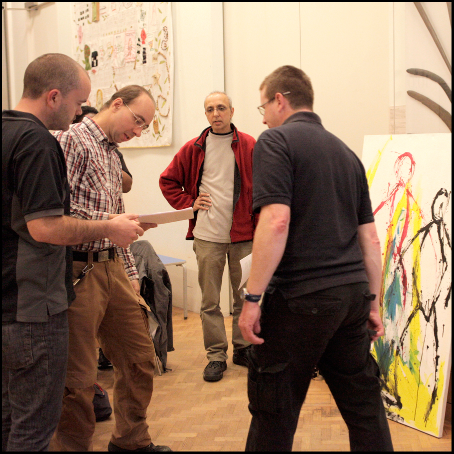Amang Mardokhy arrives at Manchester Museum to install his paintings for 90 Degree Citizen – A rare exhibition of work by a new wave of visual artists whose experiences include life as refugees in the UK, and engaging with objects from The Manchester Museum.