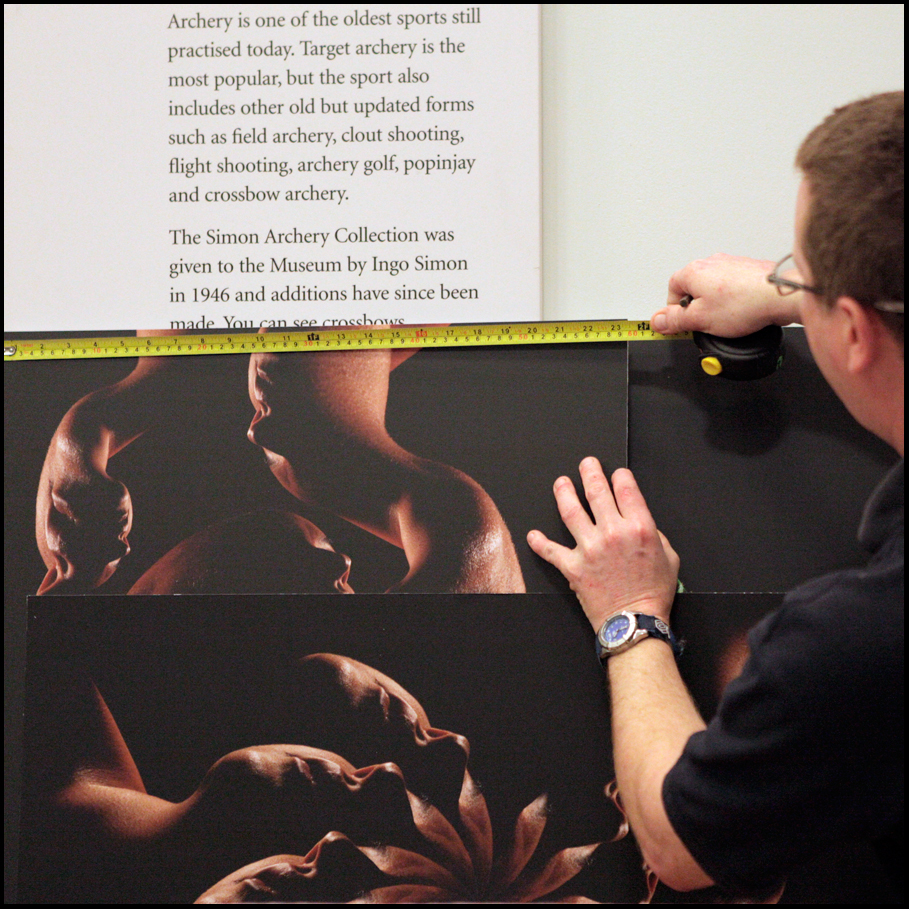 Virtual Migrants work with the Manchester Museum team to install a painting by Tracey Zengeni.